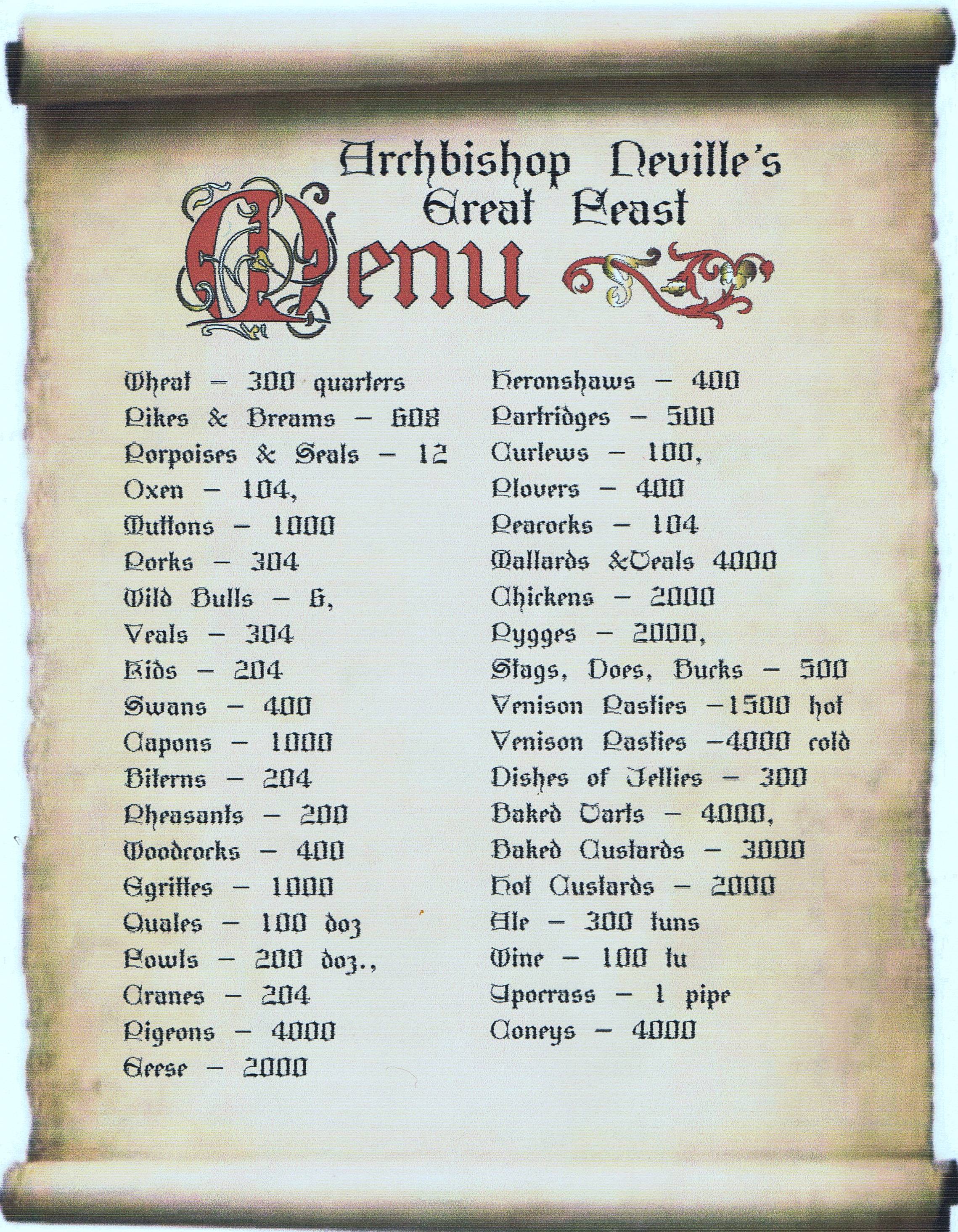 The year was 1465. A certain George Neville had been appointed Archbishop of York the year before and had taken up residence in Cawood Castle, which was the traditional residence of that esteemed office. Neville was no monastic recluse. It seems that, for a “man of the cloth,” he liked to party. Neville wanted to celebrate his appointment in style with the aim of up-staging the English Monarchy’s Coronation celebrations. What followed was to become known as the Great Feast of Cawood.