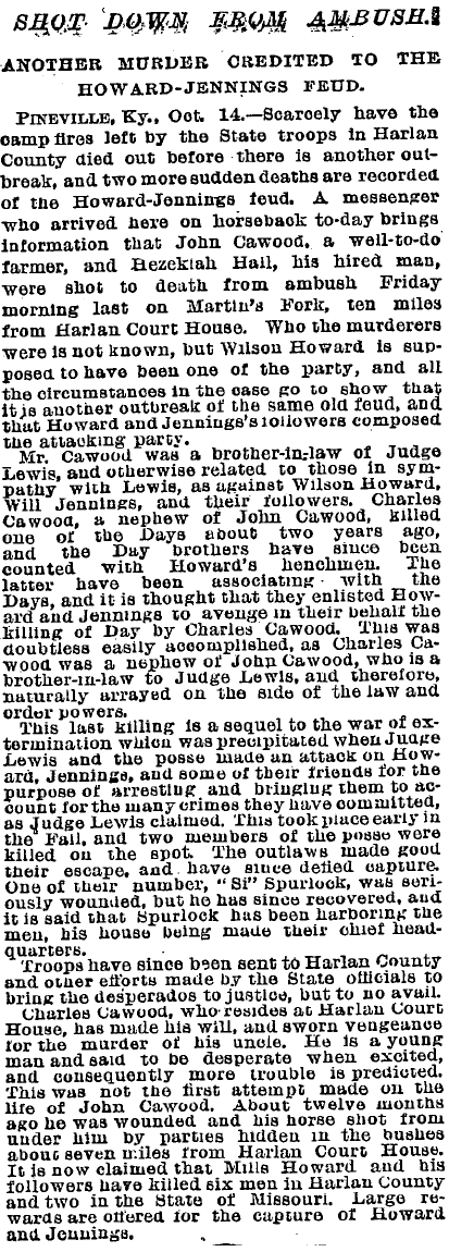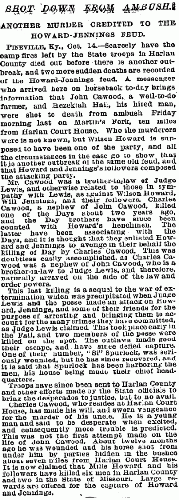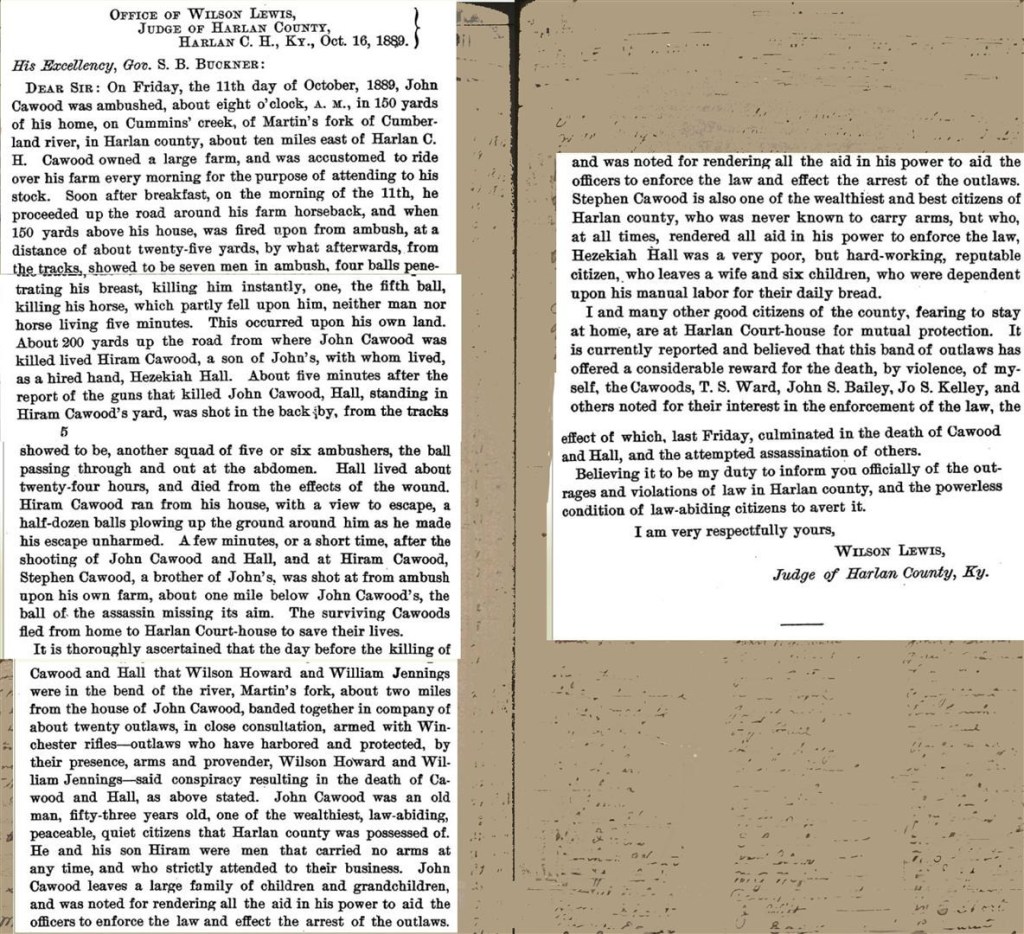 Letter from Judge Lewis to Governor Buckner on John Cawood’s Assassination On July 26, 2025 By George A CawoodLeave a comment