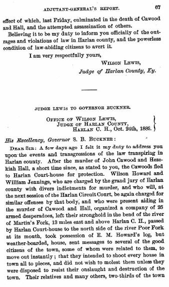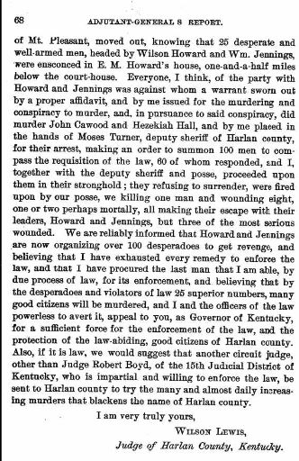 excellency will pardon us for the indictments in Harlan County against us we assure
