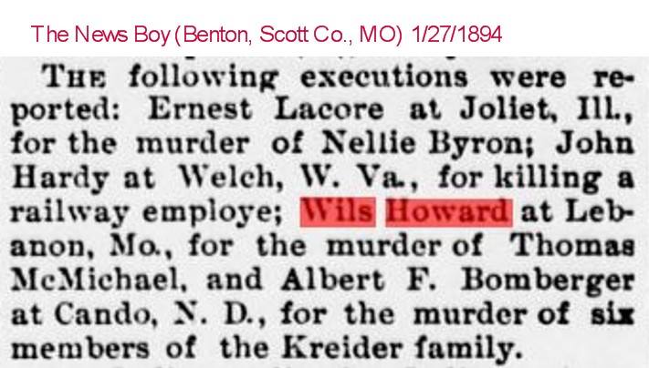 Wils Howard to Hang in Missouri for the Murder of a Deaf Mute Boy, Thomas McMichael in 1894 On September 28, 2025September 28, 2025 By George A CawoodLeave a comment